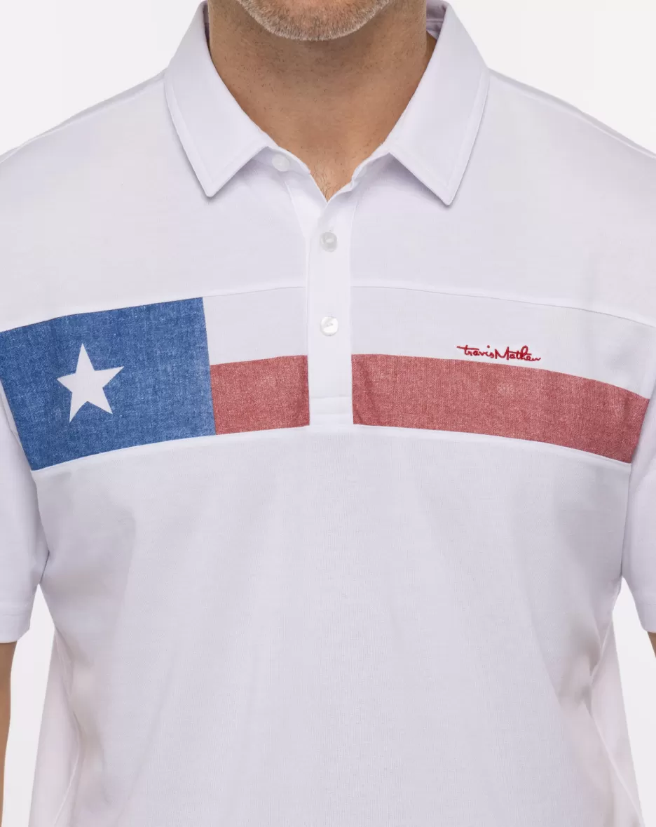 Don’t tread on the RATTLER! In classic TravisMathew style, our state-inspired polo features chest stripes, but this time with the Lone Star Flag.