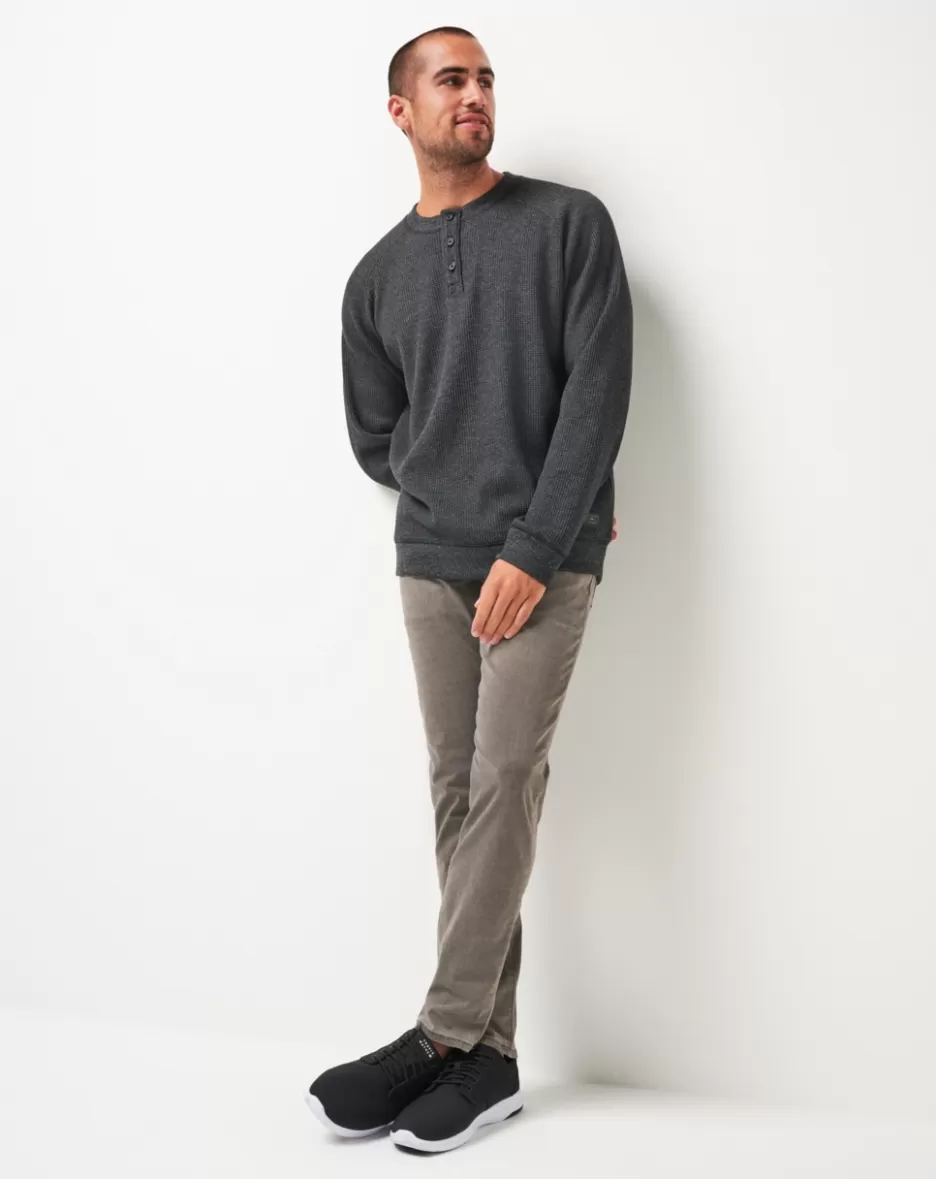Something comfortable is brewing. Part of our Cloud Collection, the STORM BREW waffle henley is the bit of elevated comf…